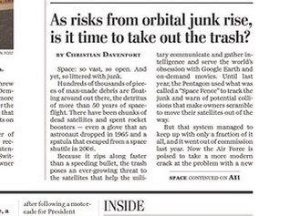 With hundreds of thousands of pieces of trash floating around in space, the threat to important satellites is growing. The Washington Post says that while the military is set to award a contract for a new Space Fence to track all the debris, some are wondering if more should be done to actually clean up all that junk. But of course that’s incredibly expensive. One Naval War College professor says people won’t be supportive of that idea until there’s a crash that affects them, say by knocking out cell phone service.