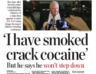 Toronto Mayor Rob Ford is finally admitting that he has smoked crack. But he says he won’t resign. In an editorial, The Toronto Star says Ford is unfit to lead a great city. Ford wants redemption but hasn’t earned it. The editorial board writes, “Exposed as a fraud, and struggling with debilitating substance abuse, anyone with an ounce of civic duty would have stepped down — to seek professional help, if nothing else.”