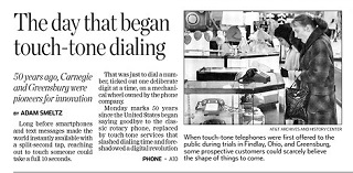 In this age of smartphones, it can be hard to imagine that today marks the 50th anniversary of touch-tone dialing. The Pittsburgh Tribune-Review says customers could pay $1.50 a month for the convenience. Early testers of the technology described touch-tone dialing as “space-age telephony” of “missile-like speed and musical tones.”