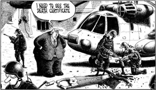 Donald Trump had to have seen this one coming. The New York Post prints a very timely cartoon from artist Sean Delonas this morning. It’s of Trump standing over the slain body of Osama bin Laden. Guess what he asks? That’s right: “I need to see the death certificate.”