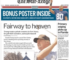 Donald Trump may live in New York, but he wants to spend eternity in New Jersey. The Star Ledger says the Donald is trying to build a private cemetery next to the Trump National Golf Club in Bedminster. He won’t be alone—club members who pay more than $300,000 will also have the option of keeping their hobby close to their hearts, even after their hearts have stopped beating.