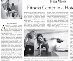 The New York Times proves that all road warriors need to stay in shape is their hotel room. Pushups using the bathtub and arm curls with an iron are two of the inspired exercises in the paper’s feature on “urban athletes.” The routine was designed by personal trainer Nicole Glor; You can buy her Fit Travel Workout DVD on Amazon.