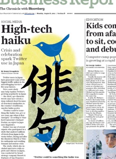 Character limit. Reminiscent of Haiku. Twitter, meet Japan. The Japanese love Twitter. According to the San Francisco Chronicle, they’ve been sending out so many tweets that they’ve caused some of the biggest traffic hikes in the site’s history. A new study says Twitter has become a popular mode of communication with the Japanese because its 140-character limit evokes a traditional art form, the haiku: “Twitter could be something like haiku was 400 or 500 years ago when it first emerged.” Linguists say Twitter’s character limit recalls the classic 5-7-5 restraints found in haiku. They also found an re-tweeting analogy, saying it calls to mind the haiku contests of yore, when people would add seven syllables to the end of a poem and then pass it on for someone else to do the same. Experts claim the site is also helping people talk more openly about their feelings and emotions, something that’s been traditionally absent from Japanese society.