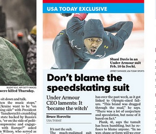 After a disappointing showing by U.S. speedskaters at the Winter Olympics, speculation grew that the new Under Armour suit they were wearing was to blame. But in USA Today, Under Armour CEO Kevin Plank says the suit was the scapegoat. He says he’s so confident in his company, he’s announcing plans to sponsor the U.S. speedskating team through 2022.