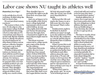 Chicago Tribune columnist Phil Rosenthal says Northwestern University should be proud of its student athletes who won a victory against the school when the National Labor Relations Board ruled that football players are essentially employees of the school and should be allowed to unionize. Rosenthal says the school taught its students enough about ethics, economics, history, political science and math to realize how unfair the college athletics system is for student athletes.