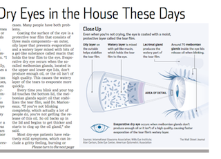 Doctors say they are treating a growing number of people for dry eyes. The culprits? Smartphones and air-conditioned office buildings. Postmenopausal women and the elderly are the usual suspects for dry-eye syndrome but in recent years the condition has spread across the population, says the Wall Street Journal.  Experts believe the problem has reached the heights it has because people aren’t blinking enough, a simple action that lubricates the eye.