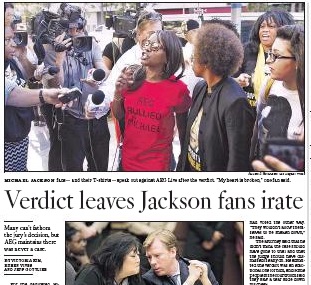 A Los Angeles jury yesterday found concert promoter AEG Live not responsible for Michael Jackson’s death. The Los Angeles Times says the verdict stunned Jackson’s fans, many of whom stood outside the courtroom each day of the trial. Jurors explained that they found Dr. Conrad Murray to be fit and competent, though he was unethical. AEG says it never considered settling the case, which could have cost the company billions had jurors ruled in favor of the Jackson family.