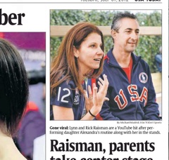 Lynn and Rick Raisman may be bigger stars than their daughter. The parents of US gymnast Aly Raisman have become a “YouTube hit” after being spotted (hilariously) mirroring their daughter’s bar routine in the stands. USA Today interviewed the pair in this morning’s paper and Rick Raisman had this to say: “I’m a little horrified right now.”