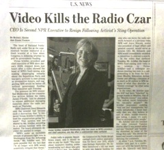 The news that NPR’s CEO resigned after footage filmed by a conservative activist was made public plays out big in virtually every paper this morning. But the Wall Street Journal wins, hands down, for best headline: “Video Kills the Radio Czar.”