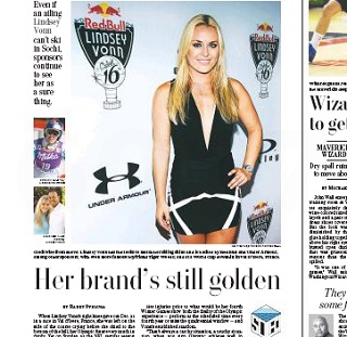 Lindsay Vonn’s Olympic hopes remain in question as she battles a knee injury, but that seems to be of little concern to sponsors, who still love the downhill skier. The Washington Post says Vonn is among the few Olympic athletes to have attracted the attention of major sponsors. One marketing expert says Vonn has all the things a sponsor would love - with number one being that she’s gorgeous.