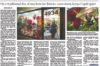 Ladies, don’t be disappointed if you don’t get any flowers today. The massive snowstorm that slammed the East Coast has made a mess of the Valentine’s Day flower delivery schedule. Florists are having trouble making deliveries. And some distributors haven’t even been able to get flowers to the florists. The Washington Post suggests we call it Valentine’s Weekend.