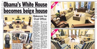 The New York Post says after the latest round of Oval Office renovations, ‘The Beige House’ might be a more apt description of the president’s working quarters. As one design expert puts it, “It’s beige on beige on beige! It’s almost a little too flat, a little too plain.” In addition to new couches and hand-painted wall coverings, President Obama’s design team added personal touches like a bust of Martin Luther King Jr., photos of his family and a pen holder made from the wood of a ship used to fight the slave trade. All of the new additions are made in the USA. The Post says surplus funds from the president’s inauguration fund were used to cover the costs.