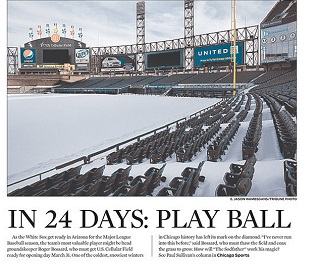 They call him the Sodfather. Roger Bossard is the head groundskeeper at US Cellular Field, the home of the Chicago White Sox. He’s got 24 days to get the field ready for baseball - following one of the coldest, snowiest winters on record. After removing the snow, the Chicago Tribune says he’ll have to bring in massive heaters to warm up the soil so that grass can grow.