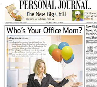 Who’s your office mom? That’s different, the Wall Street Journal notes, than your office wife. An office mom is someone who remembers birthdays and supplies the cupcakes, always has Advil at her desk and “knows your significant other is all wrong for you—and will say so.” The Journal says it’s a position that’s usually filled by an office manager or a senior executive, but is almost always a woman.