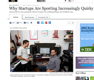Mibblio. Kaggle. Shodogg. The Wall Street Journal says to expect more mashed-up website names like Tumblr coming down the pipeline. Why? Because it’s impossible for startups to find unreserved names. The problem is that every product, no matter what it is, needs a website these days and with 250 million registered domains, finding a name that sounds sensical is a tall order. Choosing a made up word also has its benefits: it can let entrepreneurs steer clear of copyright issues.