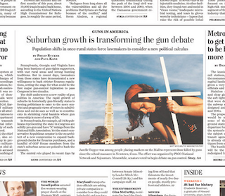 There’s an interesting story in the Washington Post this morning about whether the shift to urban America will shift the nation’s politics on gun control. States like Pennsylvania, Georgia and Virginia have traditionally been strong gun-rights states. But the Post says recently, legislators from those states have shown a willingness to pass some gun-control measures. Observers point to the rapid growth of the suburbs, which they say is forcing politicians to take a more centrist position on guns.