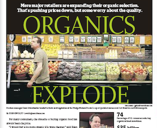 The Minneapolis Star Tribune says as organic food gets more mainstream, consumers can expect to see prices drop. Experts say most consumers make the shift to buying organic food when they have children. The paper says some insiders fear a decrease in the quality of organic food as major food companies enter the market.