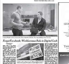 The Winklevoss twins are back in the news this morning, and it has nothing to do with fights over Facebook. The New York Times says the “Winklevii” are setting themselves up to be bitcoin moguls. Since last summer, the brothers have amassed what appears to be about $11 million of the digital currency—or they did before the bitcoin market crash yesterday sending the market tumbling. But the twins say that’s to be expected as the currency grows into “a sort of gold for the technorati.”