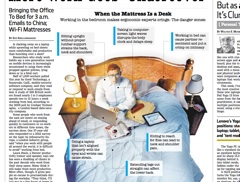 The Wall Street Journal says more and more people are working from bed these days, a situation that becomes inescapable when doing business with colleagues stationed around the world. It’s also a situation that makes ergonomic experts cringe. Luckily, there are new products on the market—such as mattresses with outlets and pillows that can prop up a tablet and hold your pens.