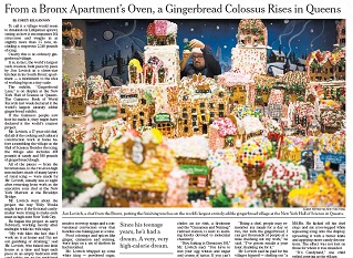 A Bronx chef has put together the world’s largest edible gingerbread village. It’s made up of 164 structures and weighs in at 1.5 tons. The New York Times says Jon Lovitch did all the baking in his “closet-sized kitchen” and assembled his village at the New York Hall of Science in Queens where it’s on display.