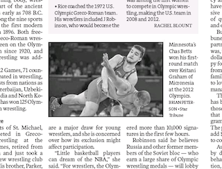Yesterday brought bad news for wrestling fans, says the Minneapolis Star Tribune, as the International Olympic Committee voted to remove the sport from Olympic contention for the 2020 Games. Wrestling advocates have added their name to the list of sports the IOC will consider adding when they reconvene in September, but insiders say it’s unlikely the sport will be included again so quickly. Other sports vying for inclusion include baseball, wakeboarding, sport climbing, squash, roller sports, karate and wushu, a Chinese martial art.