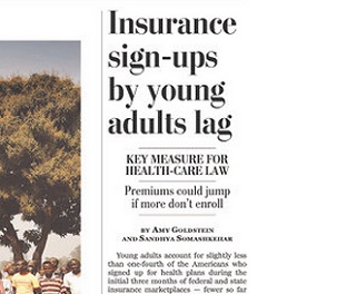 The Washington Post says young adults so far account for less than one-fourth of the new signups during the first three months that exchanges have been open under the Affordable Care Act. Analysts have said that for the economics of the health care act to work, young people need to account for roughly 40 percent of those signing up for insurance.