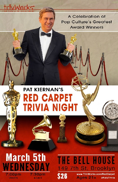 It’s time to test your knowledge of award winners in film, television, music and more. On Wednesday, March 5th, I’ll be back at Bell House hosting another fun, fast-paced trivia challenge. Check out TrivWorks for more information. You can buy your tickets here.